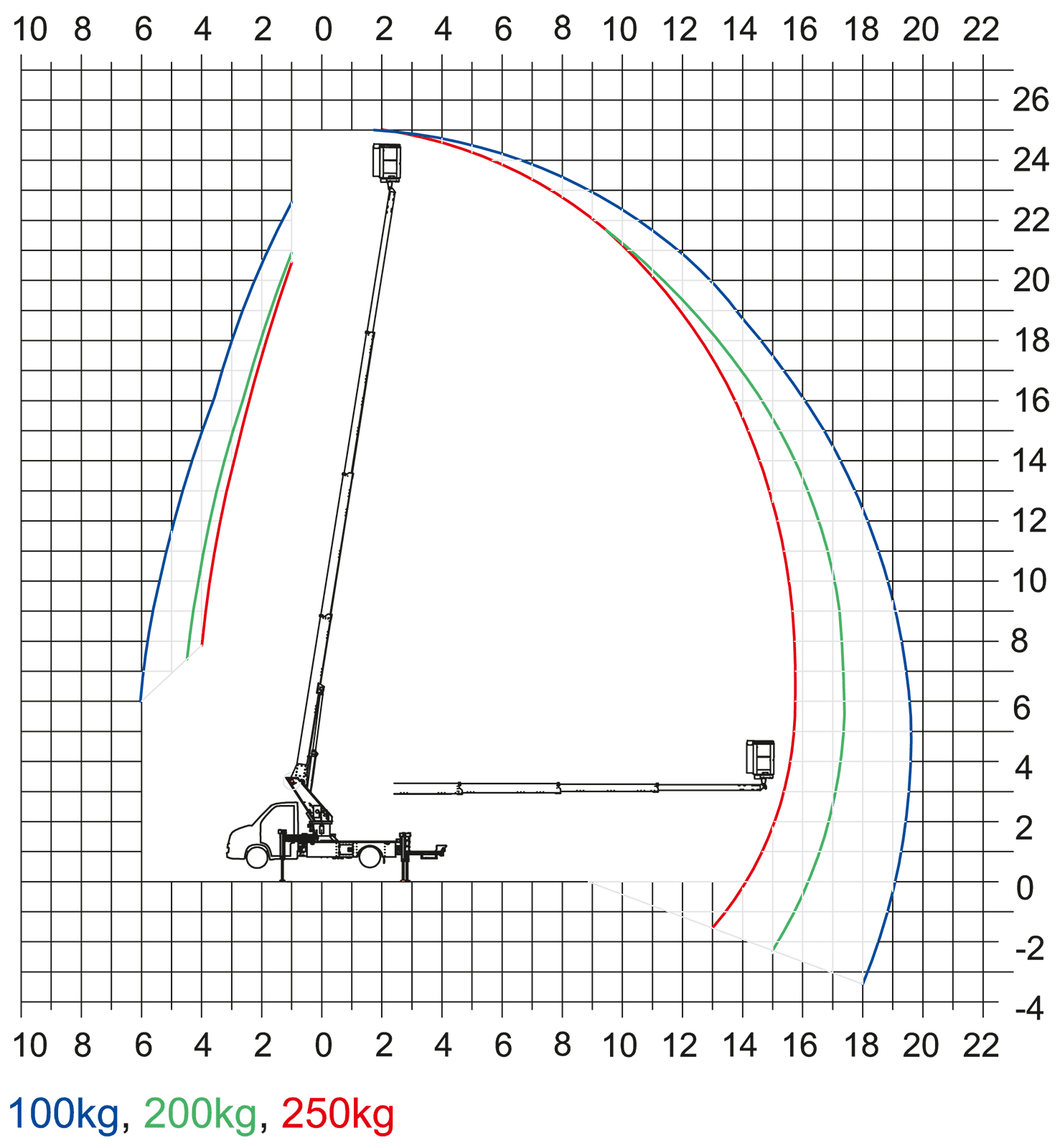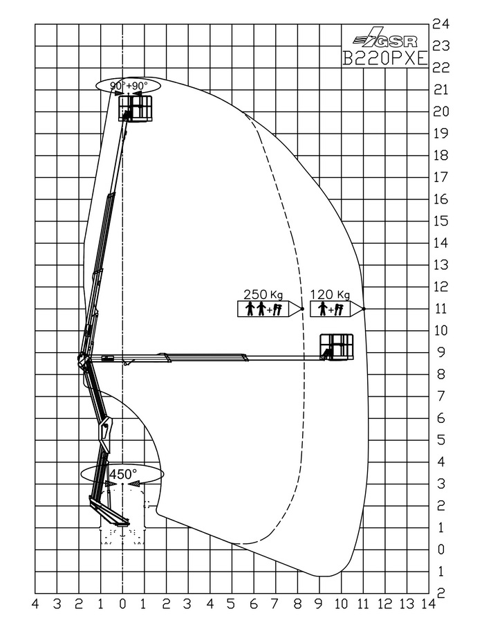 Reichweite Seite (250Kg): 12,80 m